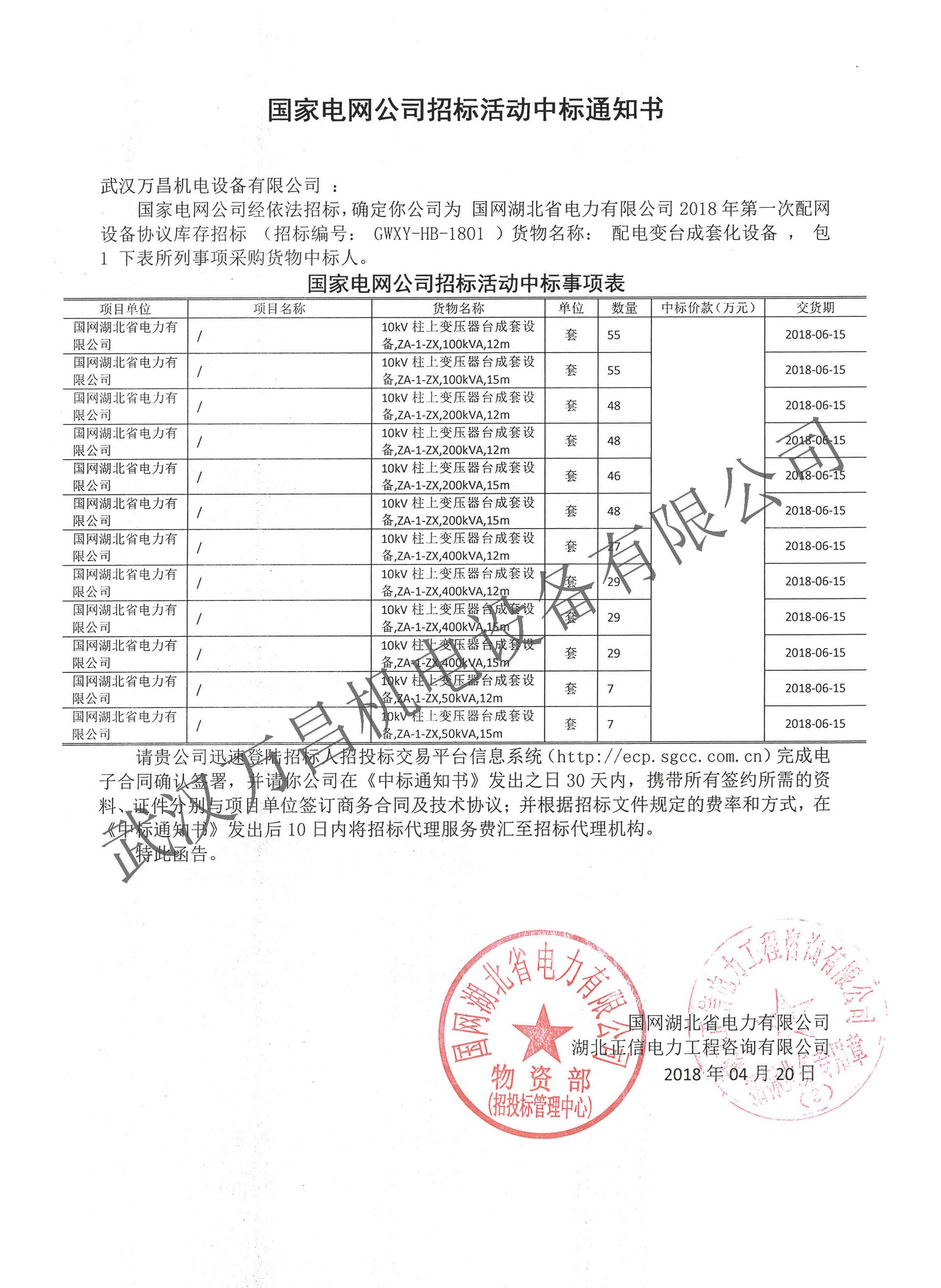 2018年中標(biāo)國(guó)網(wǎng)湖北省協(xié)議庫(kù)存項(xiàng)目